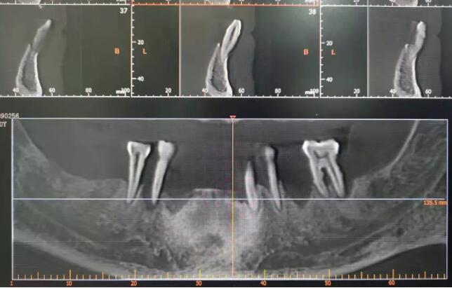 (笔者父亲检查时下颌剩余牙情况的CT截图)